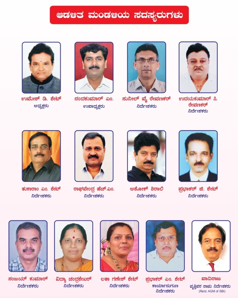 Shri Sunil.Y.Revankar, Shri B.V.Ganapathi, Shri Shivaji.R.Shet, Shri Prabhakar.M.Shet, Shri M.Nandakumar, Shri Ganapathi.S.Daivajna, Shri B.G.Mahesh, Shri Umesh.D.Shet, Shrimathi Sujatha Raghavendra and Shrimathi G.Chandramathi.